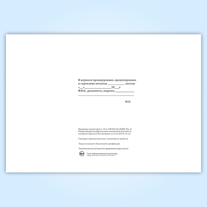 Вы получаете печатную продукцию прошнурованной и c местом для вашей печати в соответствии с действующими нормативными документами: