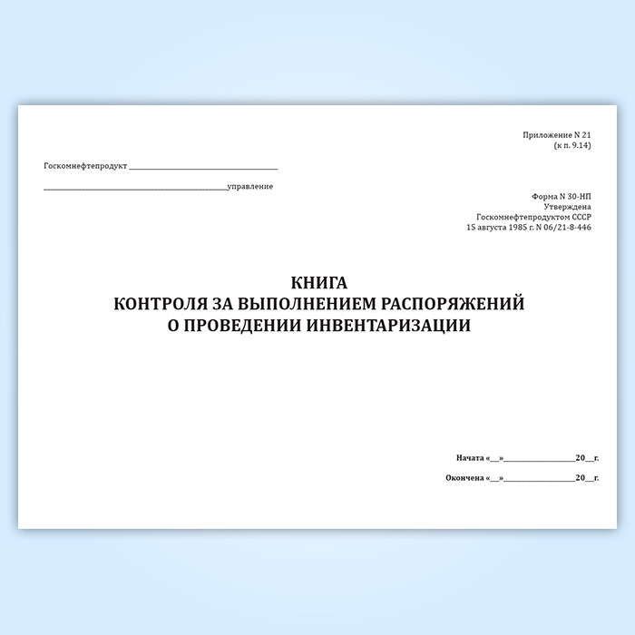 Книга контроля за выполнением распоряжений о проведении инвентаризации (форма № 30-НП) в Сургуте купить