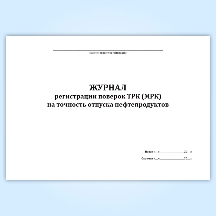 Журнал регистрации поверок ТРК (МРК) на точность отпуска нефтепродуктов в Сургуте купить