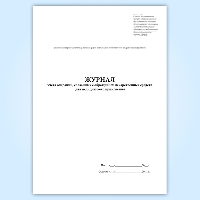Журнал учета операций, связанных с обращением лекарственных средств для медицинского применения (для производителя лекарственных средств и организации оптовой торговли лекарственными средствами) в Сургуте купить