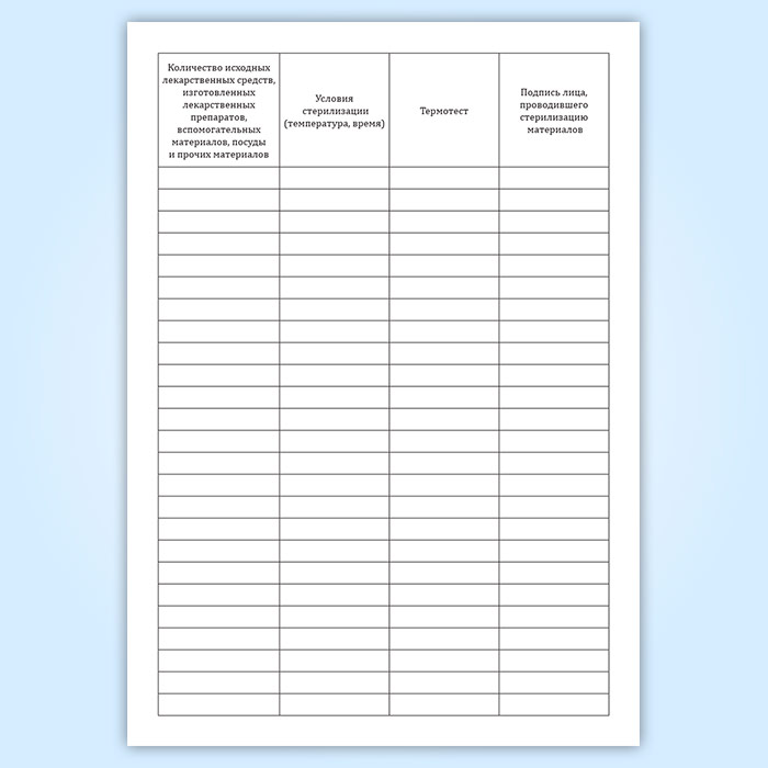 Журнал регистрации режима стерилизации исходных лекарственных средств, изготовленных лекарственных препаратов, вспомогательных материалов, посуды и прочих материалов в Сургуте купить