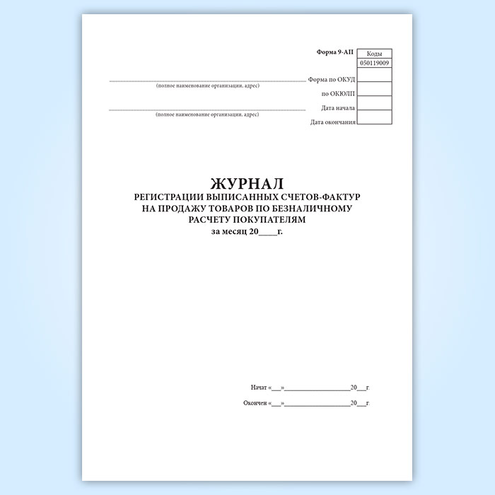 Журнал регистрации выписанных счетов-фактур на продажу товаров по безналичному расчету покупателям (форма 9-АП) в Сургуте купить