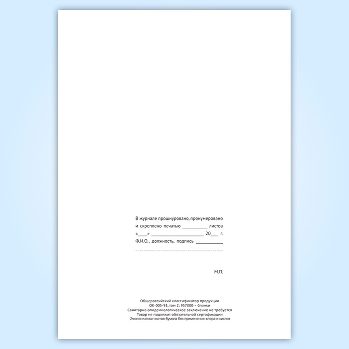 Вы получаете печатную продукцию прошнурованной и c местом для вашей печати в соответствии с действующими нормативными документами: