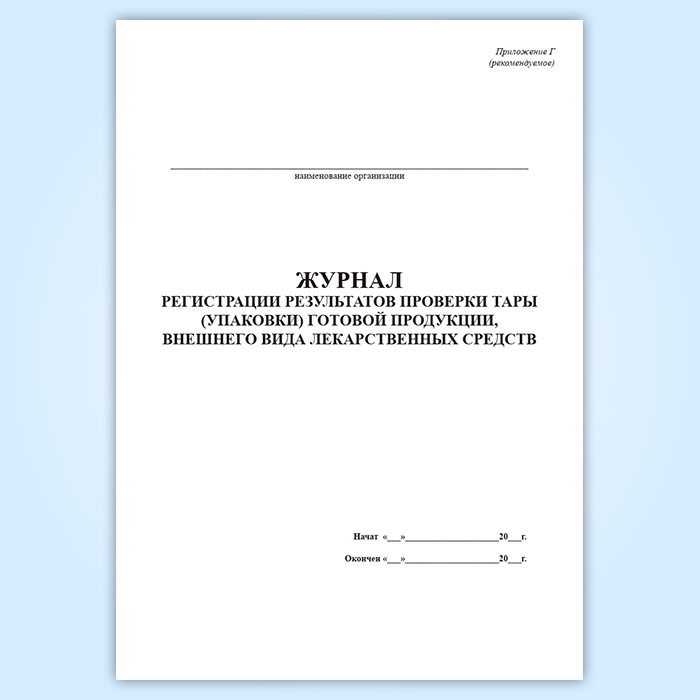 Журнал регистрации результатов проверки тары (упаковки) готовой продукции, внешнего вида лекарственных средств (форма Г) в Сургуте купить