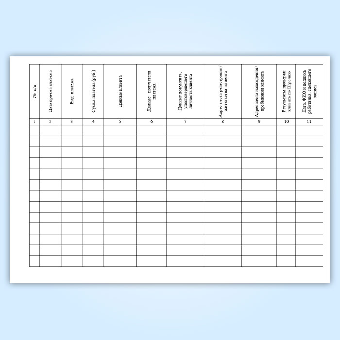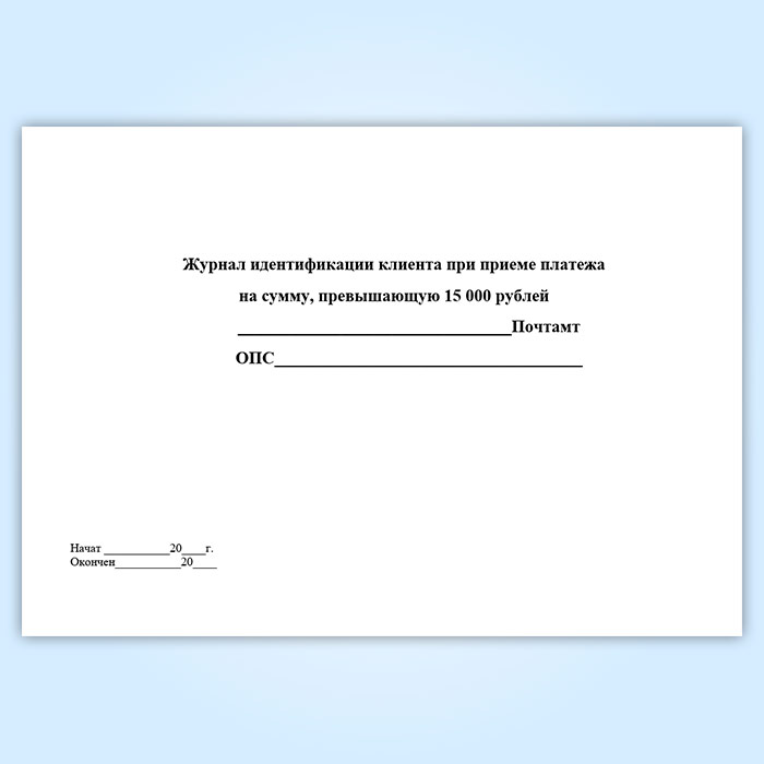 Журнал идентификации клиента при приеме платежа на сумму, превышающую 15 000 рублей в Сургуте купить