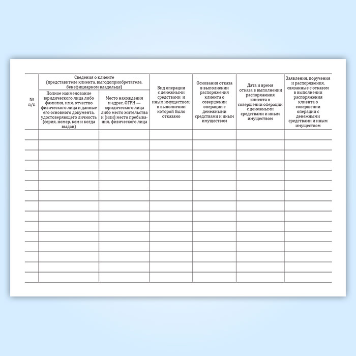 Журнал учета отказов в выполнении распоряжения клиентов о совершении операции с денежными средствами и иным имуществом в Сургуте купить