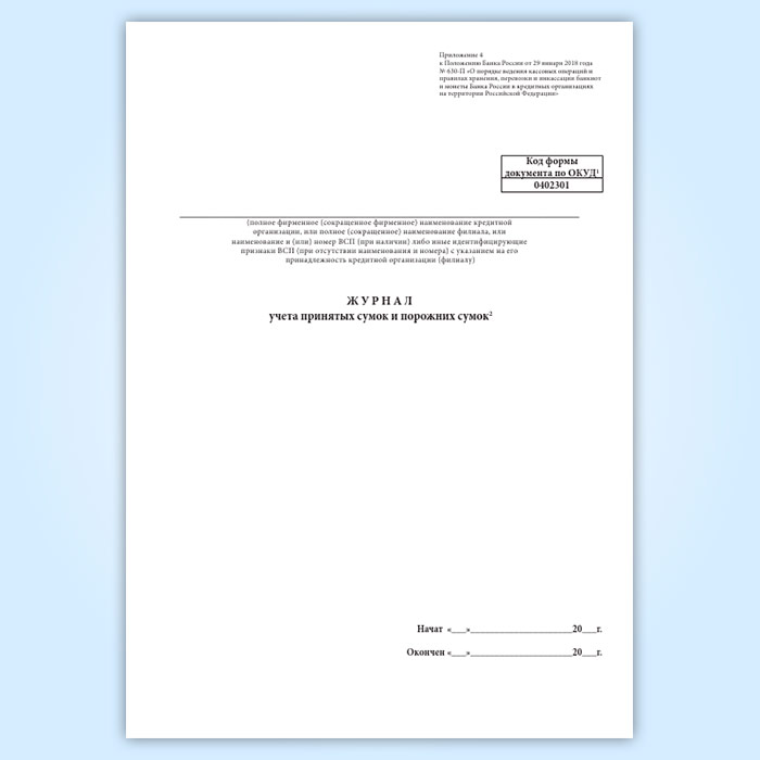 Журнал учета принятых сумок и порожних сумок (форма по ОКУД 0402301) в Сургуте купить