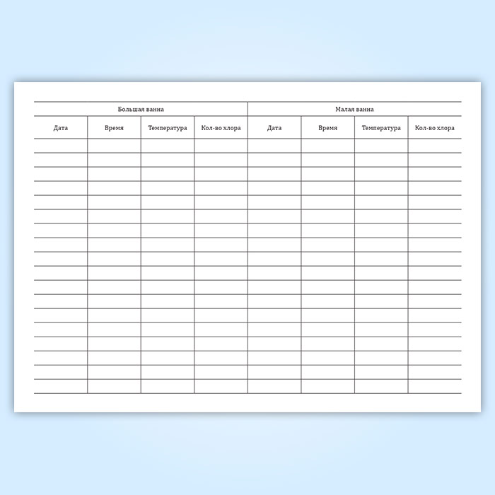 Журнал учета хлорирования и температурного режима плавательного бассейна в Сургуте купить