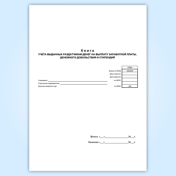 Книга учета выданных раздатчикам денег на выплату заработной платы, денежного довольствия и стипендий (форма по ОКУД 0504046) в Сургуте купить
