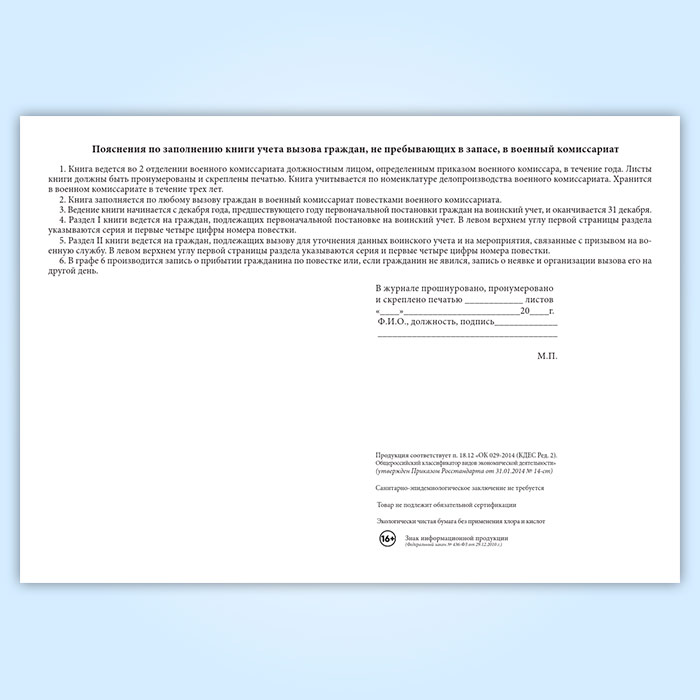Книга учета вызова граждан, не пребывающих в запасе, в военный комиссариат и выдачи им повесток в Сургуте купить