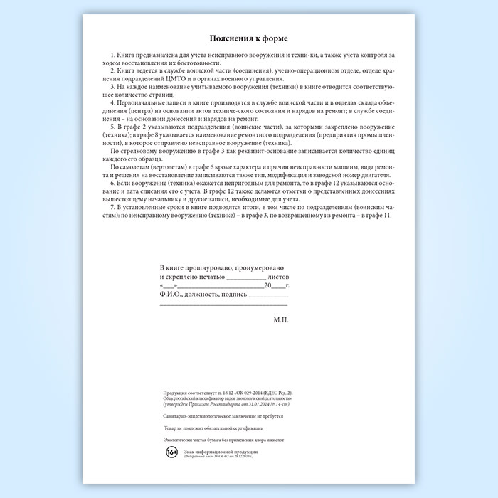 Книга учета неисправного вооружения и военной техники (форма 19) в Сургуте купить