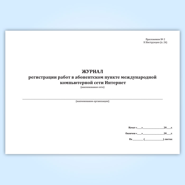 Журнал регистрации работ в абонентском пункте международной компьютерной сети Интернет в Сургуте купить