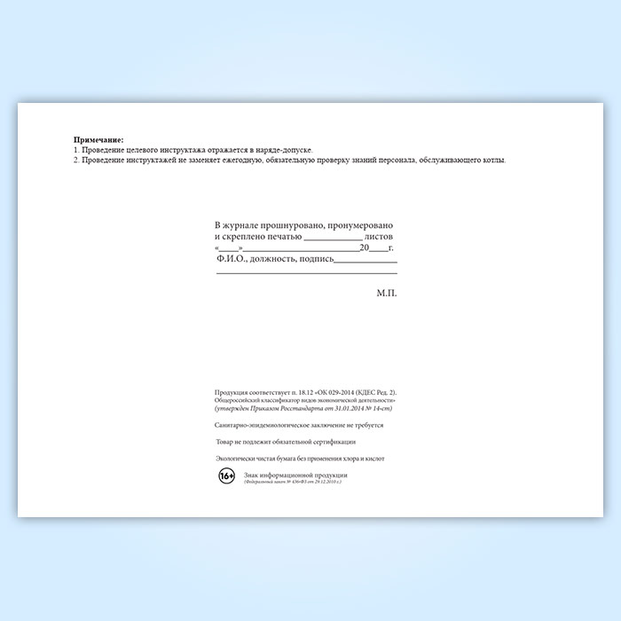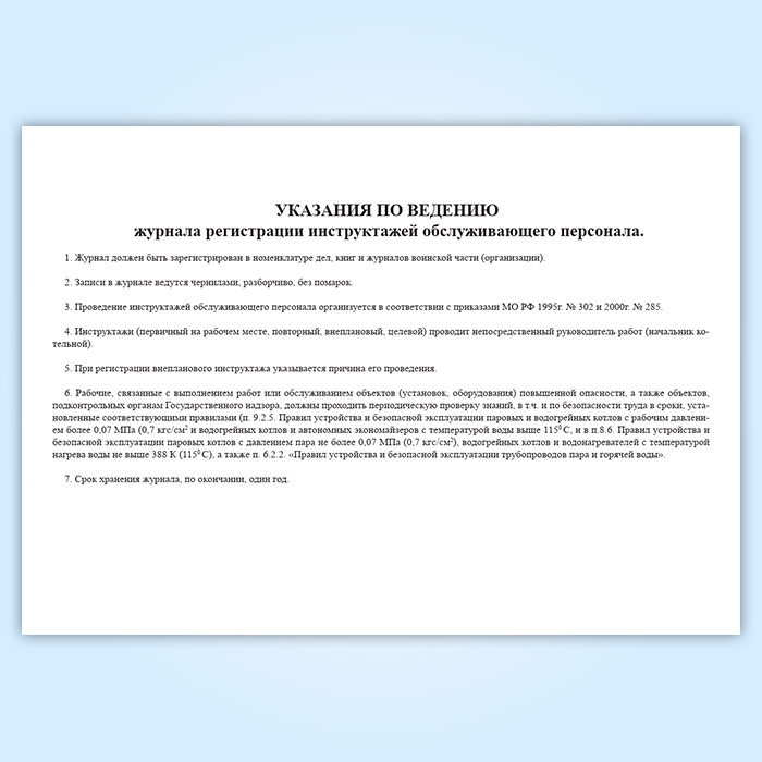 Журнал регистрации инструктажей обслуживающего персонала котельной (для воинских частей, предприятий и организаций) в Сургуте купить