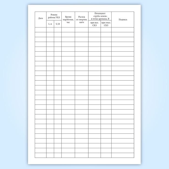 Полевой журнал учета работы установки катодной защиты в Сургуте купить
