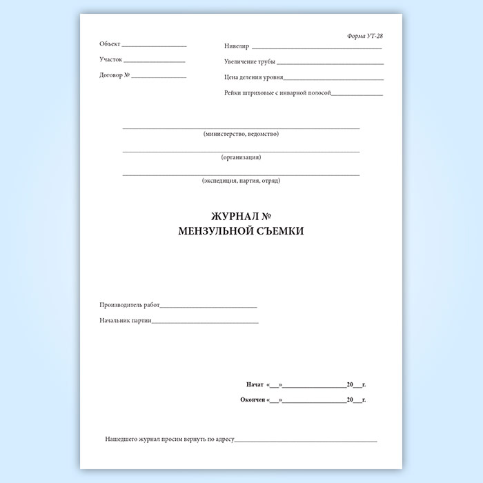Журнал мензуальной съемки (форма УТ-28) в Сургуте купить