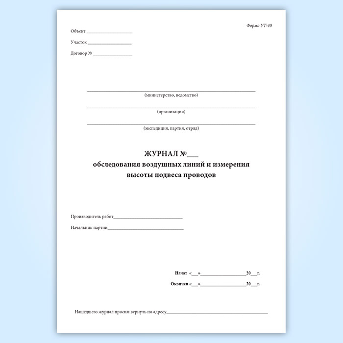 Журнал обследования воздушных линий и высоты подвеса проводов (форма УТ-40) в Сургуте купить