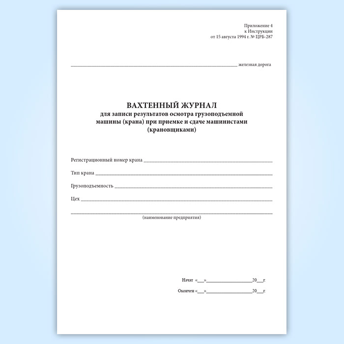 Вахтенный журнал для записи результатов осмотра грузоподъемной машины (крана) при приемке и сдаче машинистами (крановщиками) в Сургуте купить