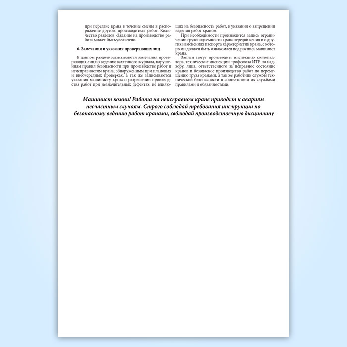 Вахтенный журнал приема-сдачи смен машинистами крана в Сургуте купить
