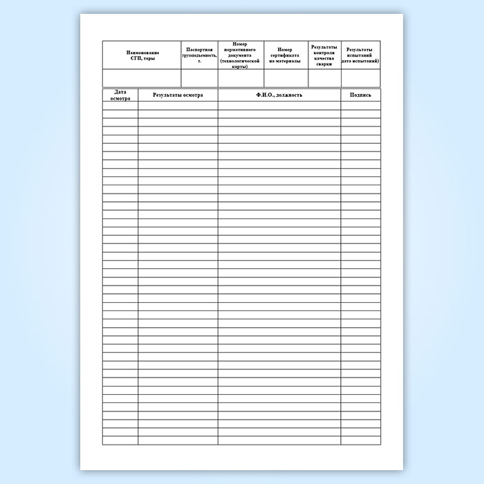 Журнал учета и осмотра съёмных грузозахватных приспособлений и тары (ремонтно-механическая мастерская) в Сургуте купить