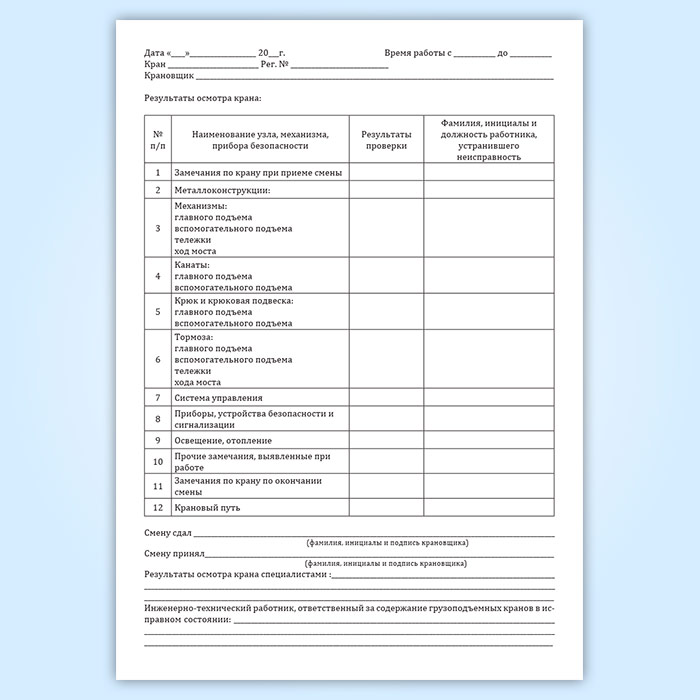Вахтенный журнал машиниста мостового крана в Сургуте купить