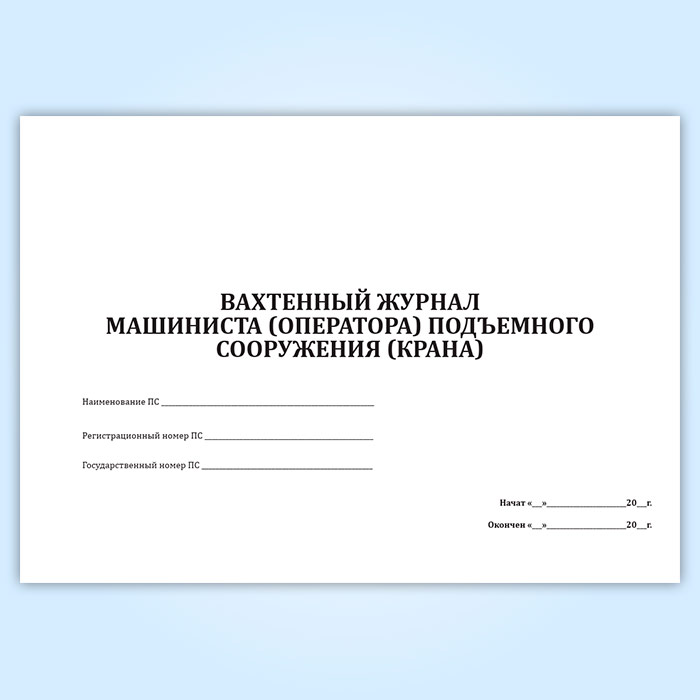 Вахтенный журнал машиниста (оператора) подъемного сооружения (крана) в Сургуте купить