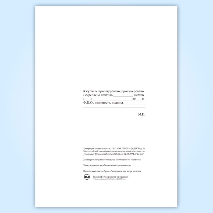 Вы получаете печатную продукцию прошнурованной и c местом для вашей печати в соответствии с действующими нормативными документами:
