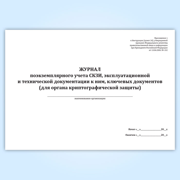 Журнал поэкземплярного учета СКЗИ, эксплуатационной и технической документации к ним, ключевых документов (для органа криптографической защиты) в Сургуте купить