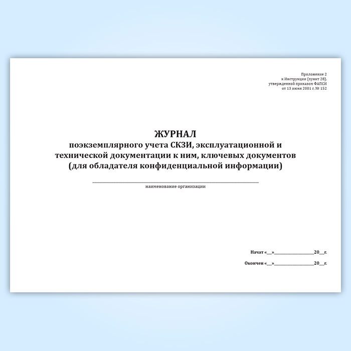 Журнал поэкземплярного учета СКЗИ, эксплуатационной и технической документации к ним, ключевых документов (для обладателя конфиденциальной информации) в Сургуте купить