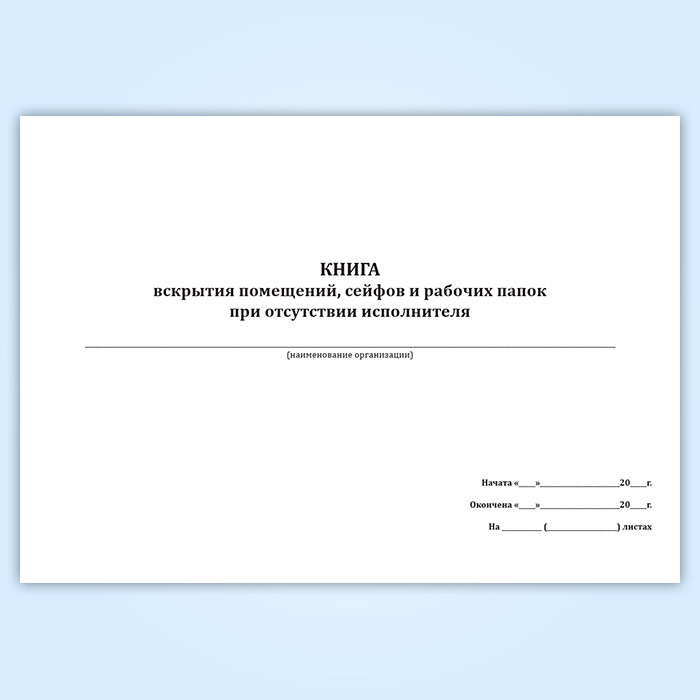 Книга вскрытия помещений, сейфов и рабочих папок при отсутствии исполнителя в Сургуте купить