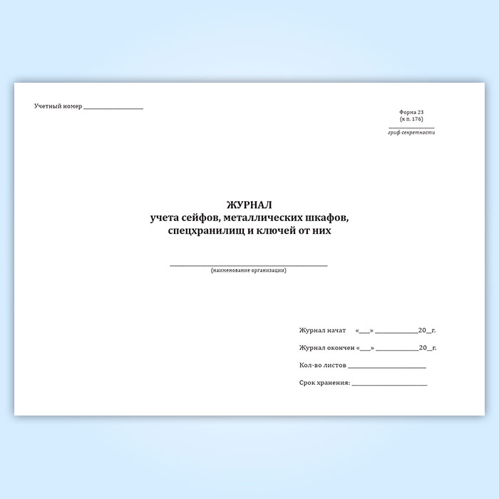 Журнал учета сейфов, металлических шкафов, спецхранилищ и ключей от них в Сургуте купить