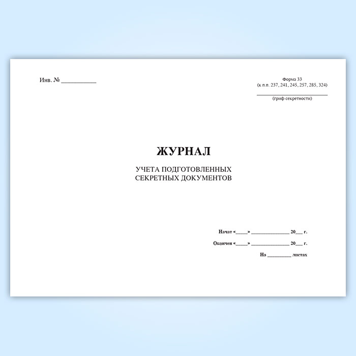 Журнал учета подготовленных секретных документов (форма 33) в Сургуте купить