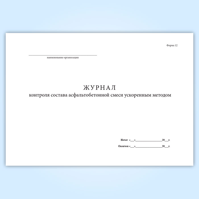 Журнал контроля состава асфальтобетонной смеси ускоренным методом (форма 12) в Сургуте купить