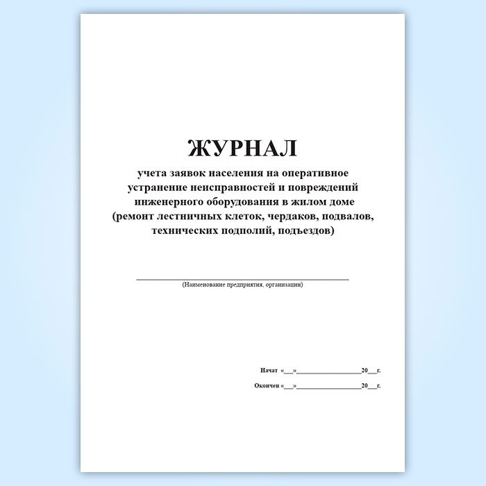 Журнал учета заявок населения на оперативное устранение неисправностей и повреждений инженерного оборудования в жилом доме ремонт лестничных клеток, чердаков, подвалов, технических подполий, подъездов в Сургуте купить