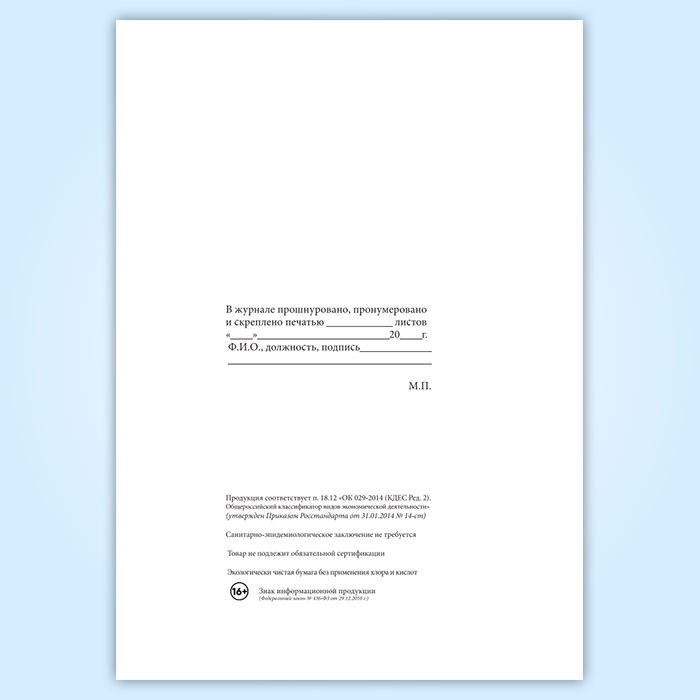 Вы получаете печатную продукцию прошнурованной и c местом для вашей печати в соответствии с действующими нормативными документами: