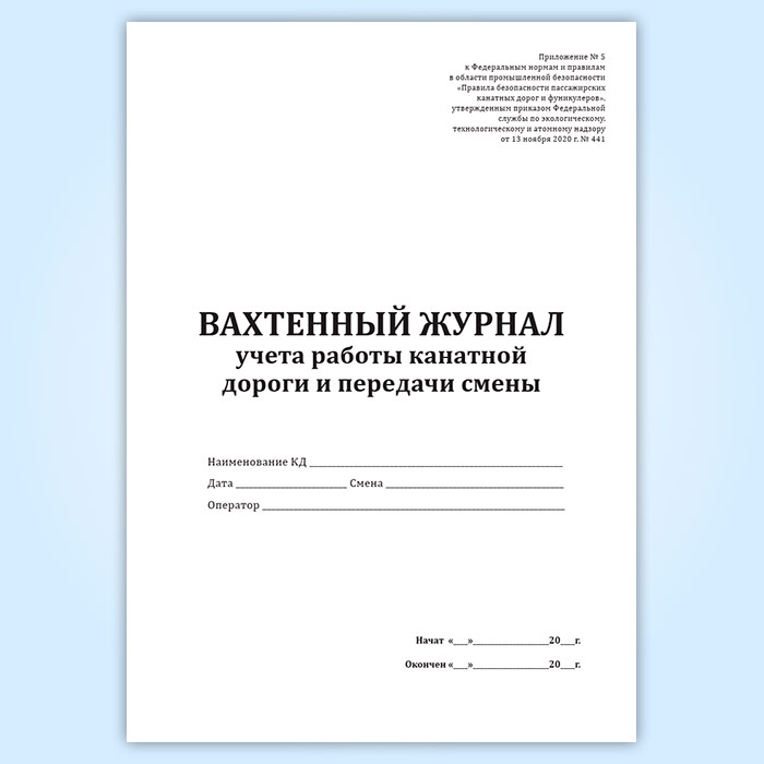 Вахтенный журнал учета работы канатной дороги и передачи смены в Сургуте купить