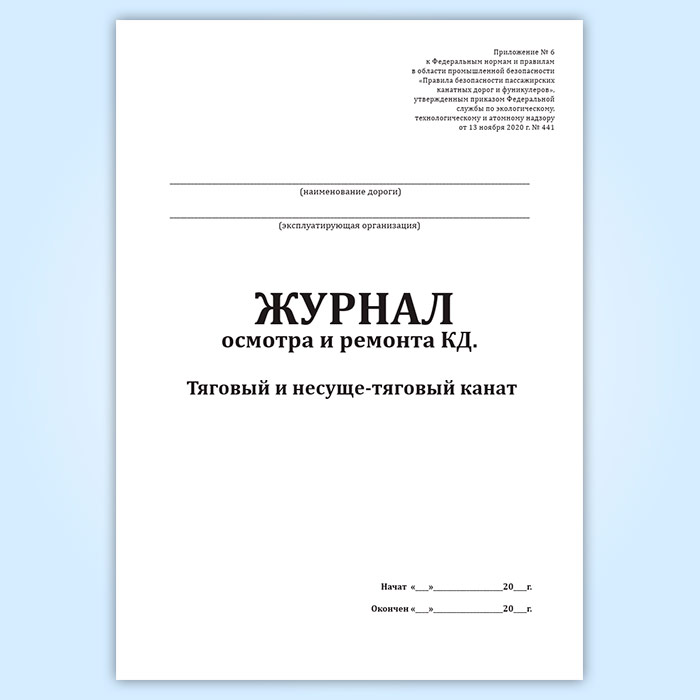 Журнал осмотра и ремонта канатной дороги. Тяговый и несуще-тяговый канат (форма № 2) в Сургуте купить