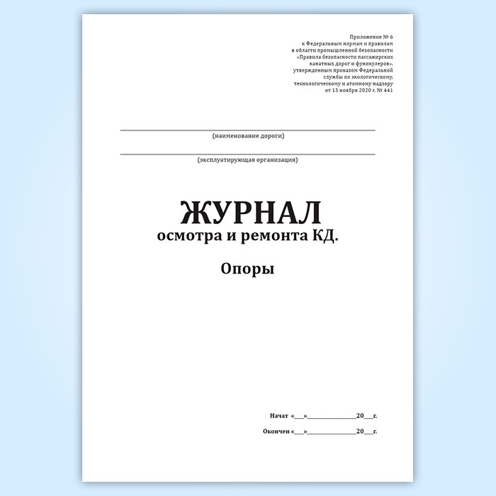 Журнал осмотра и ремонта канатной дороги. Опоры (форма № 6) в Сургуте купить