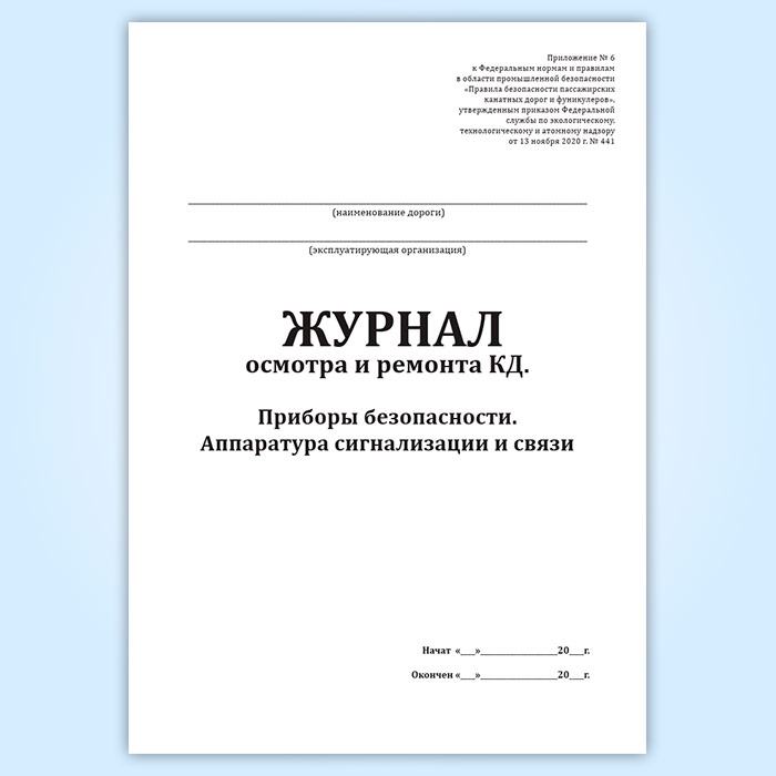 Журнал осмотра и ремонта канатной дороги. Приборы безопасности. Аппаратура сигнализации и связи (форма № 9) в Сургуте купить