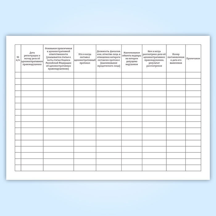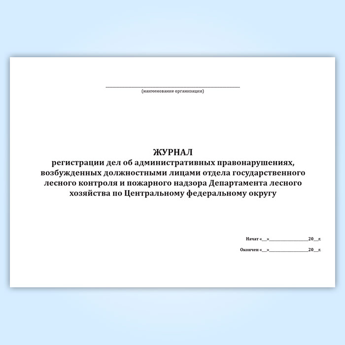 Журнал регистрации дел об административных правонарушениях, возбужденных должностными лицами отдела государственного лесного контроля и пожарного надзора Департамента лесного хозяйства по Центральному федеральному округу в Сургуте купить