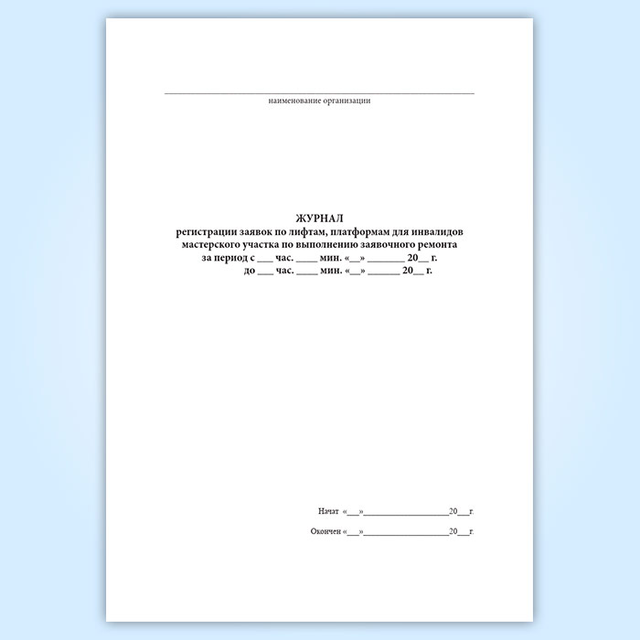 Журнал регистрации заявок по лифтам, платформам для инвалидов мастерского участка по выполнению заявочного ремонта в Сургуте купить