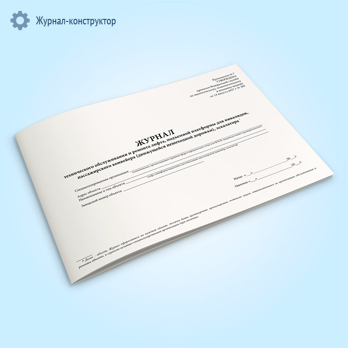 Журнал технического обслуживания и ремонта лифта, подъемной платформы для инвалидов, пассажирского конвейера (движущейся пешеходной дорожки), эскалатора в Сургуте купить