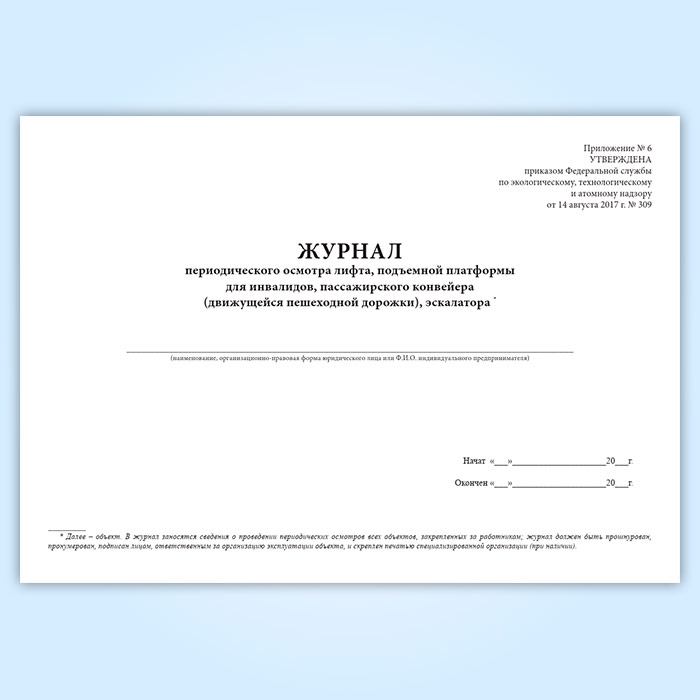Журнал периодического осмотра лифта, подъемной платформы для инвалидов, пассажирского конвейера (движущейся пешеходной дорожки), эскалатора в Сургуте купить
