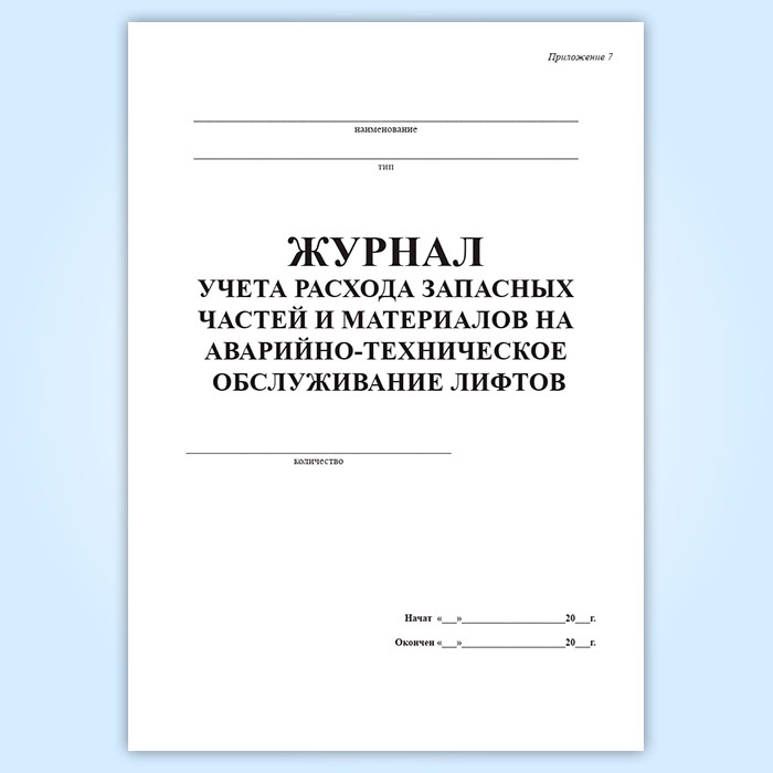 Журнал учета расхода запасных частей и материалов на аварийно-техническое обслуживание лифтов в Сургуте купить