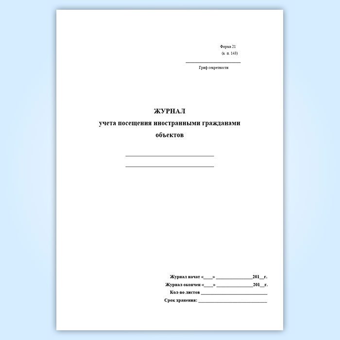 Журнал учета посещения иностранными гражданами объектов (форма 21) в Сургуте купить