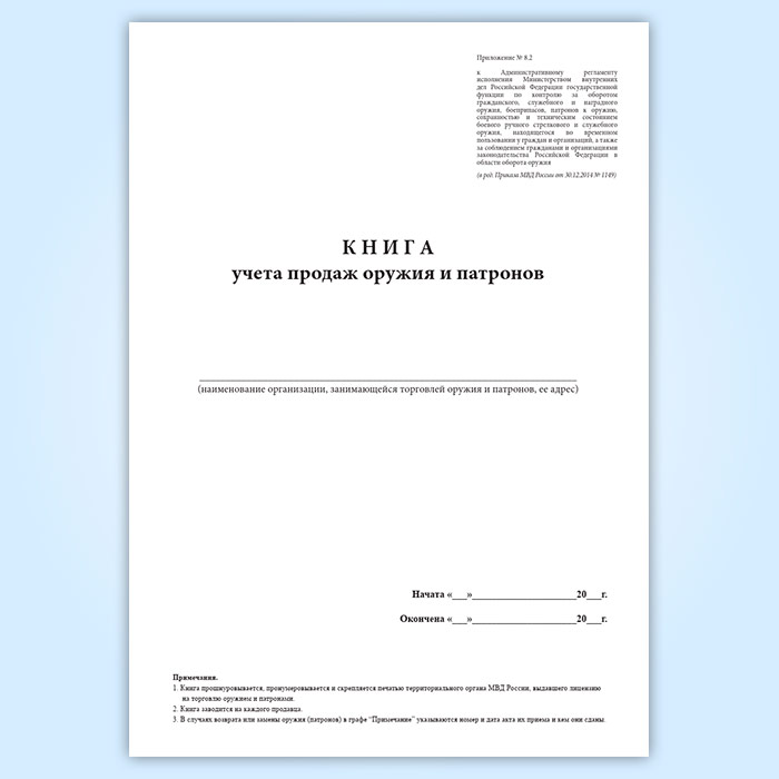 Книга учета продаж оружия и патронов (Приказ МВД России от 29.06.2012 N 646) в Сургуте купить