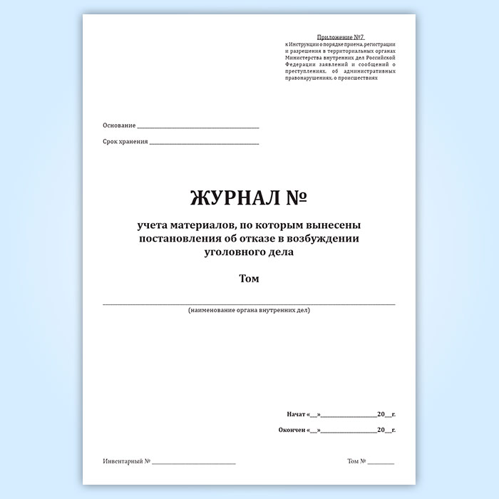 Журнал учета материалов, по которым вынесены постановления об отказе в возбуждении уголовного дела в Сургуте купить