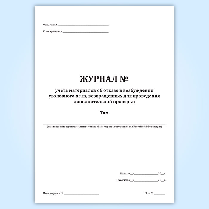 Журнал учета материалов об отказе в возбуждении уголовного дела, возвращенных для проведения дополнительной проверки в Сургуте купить