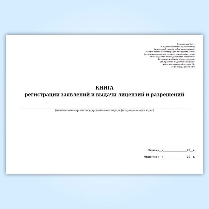 Книга регистрации заявлений и выдачи лицензий и разрешений (Приказ Росгвардии от 14.01.2020 N 8) в Сургуте купить