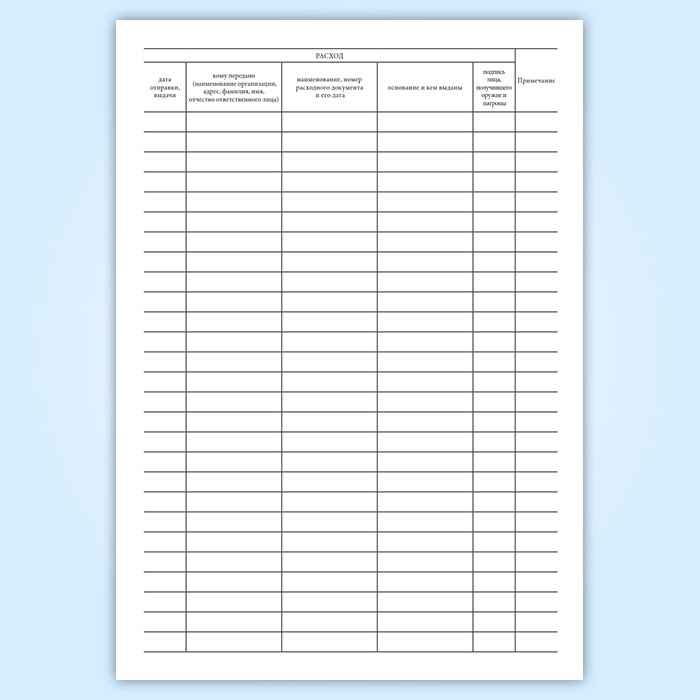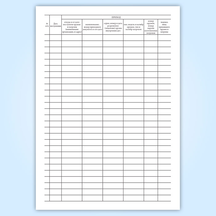 Книга учета наличия и движения поступающего, хранящегося и выдаваемого (проданного) оружия и патронов в Сургуте купить