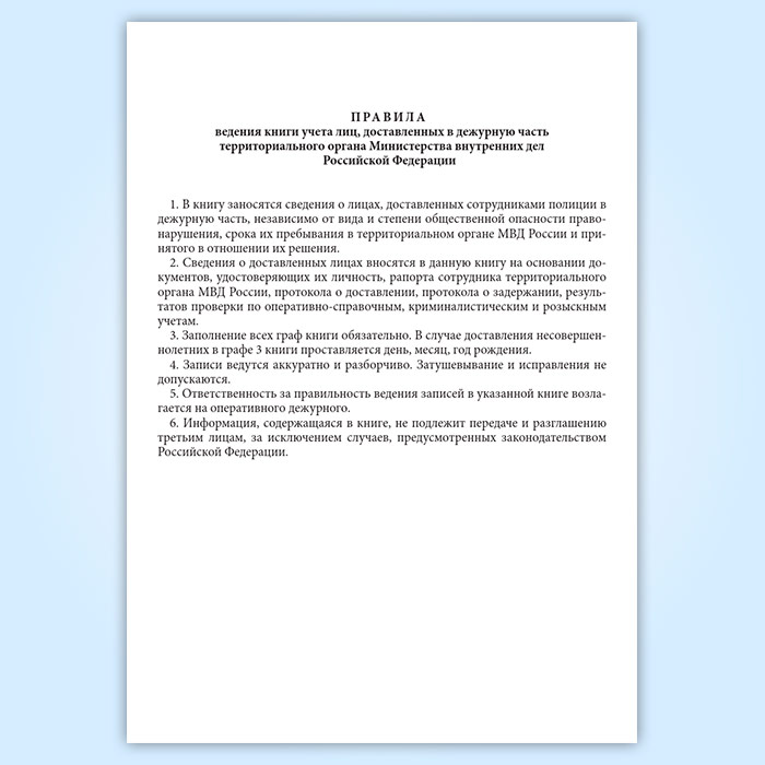 Книга учета лиц, доставленных в дежурную часть территориального органа МВД РФ в Сургуте купить